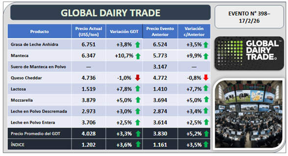 El índice de precios de la plataforma GDT mostró nuevamente una mejora, aunque persisten tensiones en el producto principal.
