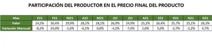 BUENOS AIRES (NAP). El relevo mensual que hace la Confederación Argentina de la Mediana Empresa, que mide la brecha de precios entre lo que cobra el productor agropecuario y el precio al consumidor del producto primario, subió el 0,7% en diciembre comparado con noviembre.