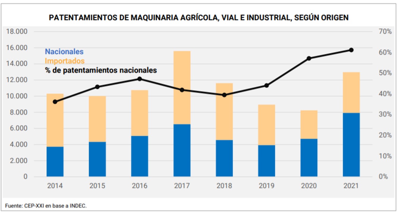 También se recuperó con fuerza la industria de maquinarias y equipos, gracias a que los patentamientos de maquinaria agrícola, vial e industrial de origen nacional fueron los más altos desde al menos de 2014.