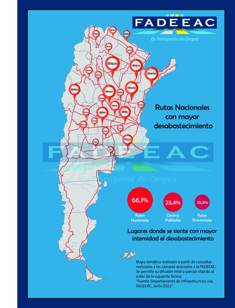 A partir de las respuestas de conductores y propietarios de camiones de algunas de las 4.400 pymes que integran las 43 Cámaras de transporte nucleadas en Fadeeac se conforma el mapa que grafica en tiempo real la disponibilidad de combustible en la Argentina.