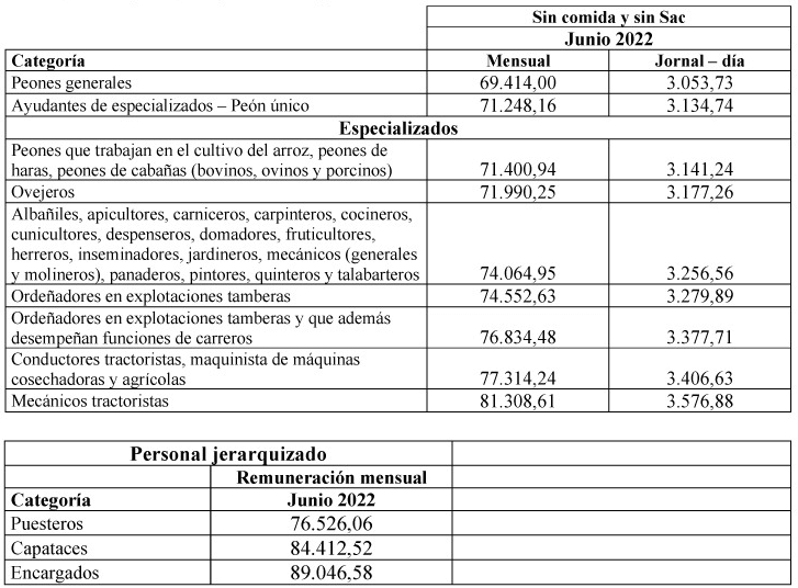 BUENOS AIRES (NAP). La Comisión Nacional de Trabajo Agrario publicó en la última semana una serie de resoluciones que oficializan subas en los sueldos de los trabajadores rurales de diversos rubros.