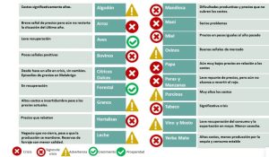De las 19 actividades que releva Coninagro, mientras que 11 muestran un estado crítico y 6 se encuentran en estado de alerta de crisis.