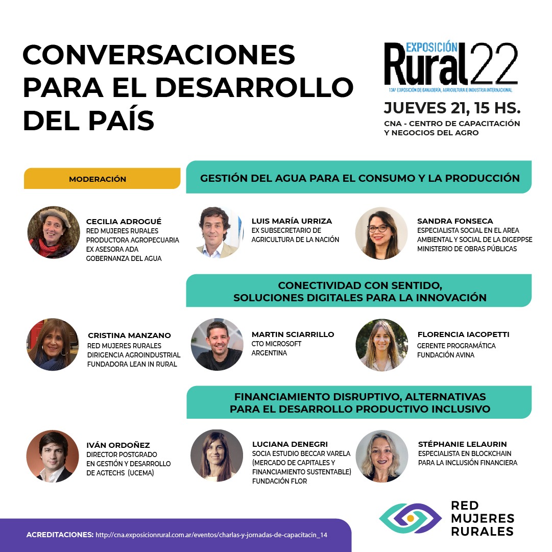 Por su parte, a las 15 la Red de Mujeres Rural y la iniciativa Nanum, Mujeres Conectadas, convocan a la jornada “Conversaciones para el desarrollo del país” (el programa de puede leer más abajo).