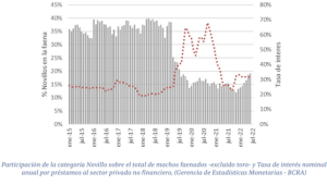 Este último punto se ve claramente reflejado cuando se analiza la proporción de novillos que llegan a faena en relación a la cantidad total de machos y el costo financiero promedio de esta inmovilización de capital (Tasa de interés promedio para préstamos al sector privado, no financiero).