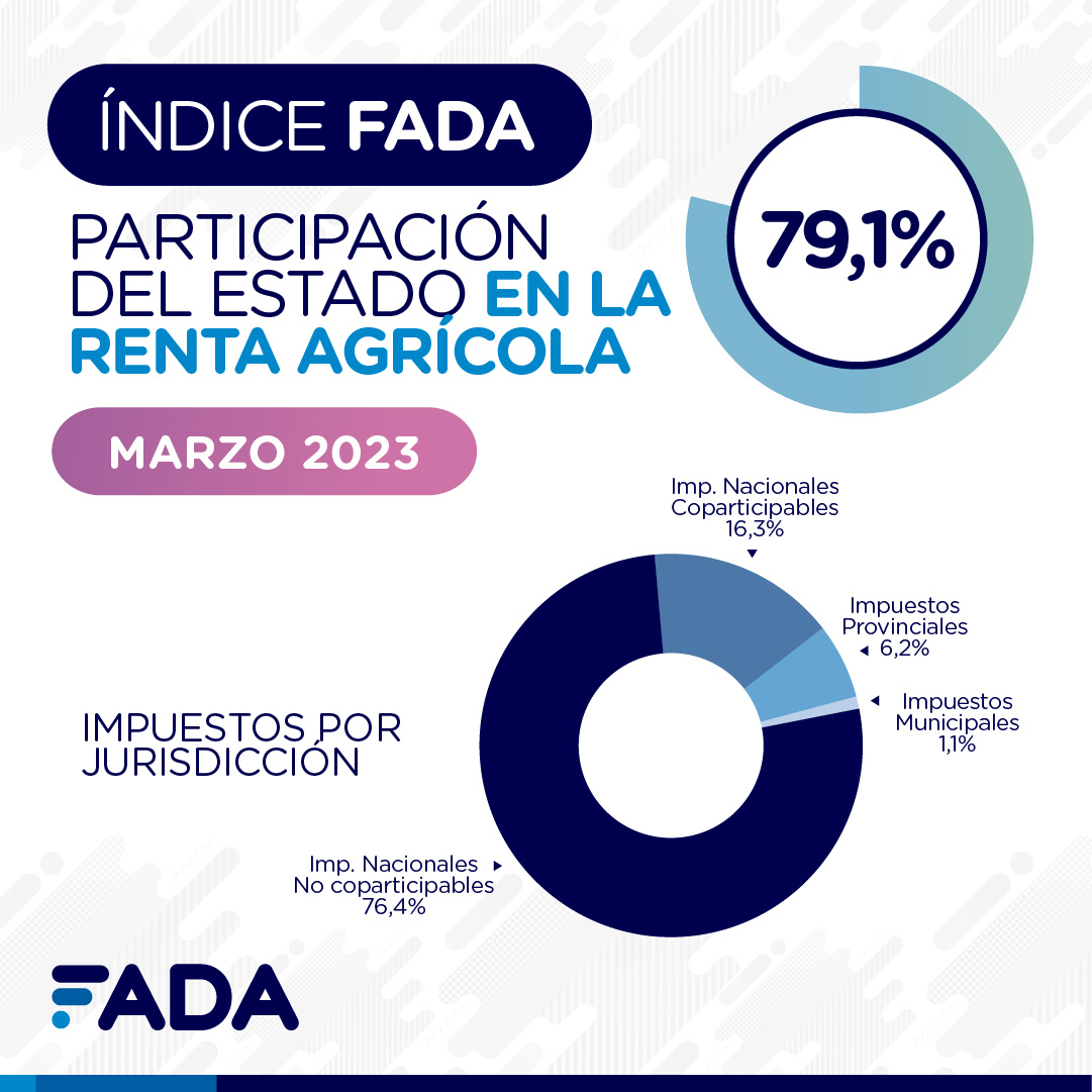 En el informe, el economista jefe de Fada, David Miazzo apuntó que “el impacto que tiene la sequía reduciendo el impuesto a las ganancias genera que los impuestos no coparticipables crezcan, hasta llevarse 3 de cada 4 pesos que aportará en impuestos la producción agrícola este año, un récord, al menos desde que Fada lo mide”.