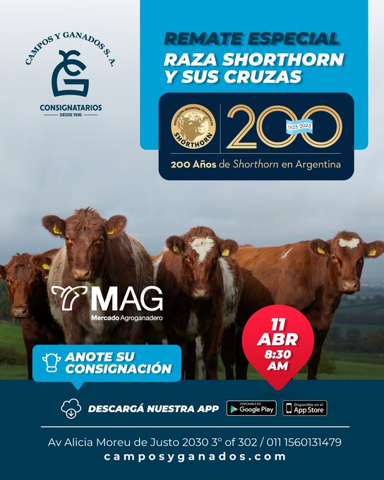 Este martes 11, la Asociación Argentina de Criadores de la raza Shorthorn dio comienzo, en el Mercado Agro Ganadero (MAG) de Cañuelas,a los festejos de 200 años de ese acontecimiento. Las celebraciones serán hasta en septiembre en Bolívar con la Exposición Nacional de Shorthorn en la Sociedad Rural de ese partido bonaerense.