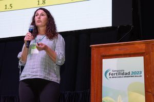 Por su parte, Miriam Barraco del INTA General Villegas brindó una charla sobre el manejo de la fertilización en cultivos de granos en la llamada Pampa Arenosa, región que se abarca el noroeste de Buenos Aires, el noreste de La Pampa y también los extremos sudeste de Córdoba y sudoeste de Santa Fe. Los suelos son de texturas arenosas a franco arenosas, con moderada capacidad de almacenaje de agua, alta permeabilidad y bajos a medios contenidos de materia orgánica. Allí, la intensificación de la agricultura y la falta de rotaciones con pasturas perennes produjo una caída de los niveles de carbono de los suelos, disminuciones significativas de fósforo, calcio, zinc, y una baja en los valores de pH.