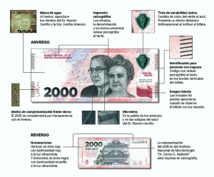 El billete conmemorativo de 2000 pesos cuenta con estrictas medidas de seguridad. Entre ellas, se destacan la marca de agua que reproduce las imágenes de Ramón Carrillo y Cecilia Grierson.