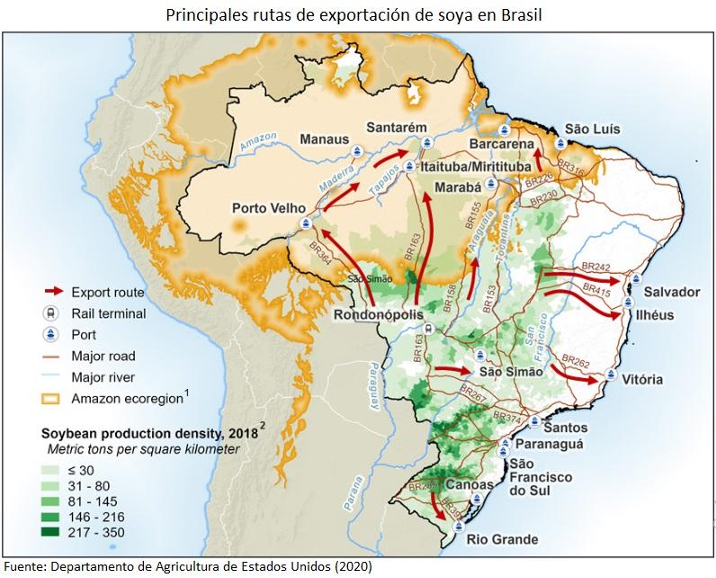 Tradicionalmente la salida de granos se encontraba concentrado en los puertos de las regiones Sur y Sudeste (Santos, en San Pablo; Paranaguá en Paraná y Rio Grande, Rio Grande Do Sul).