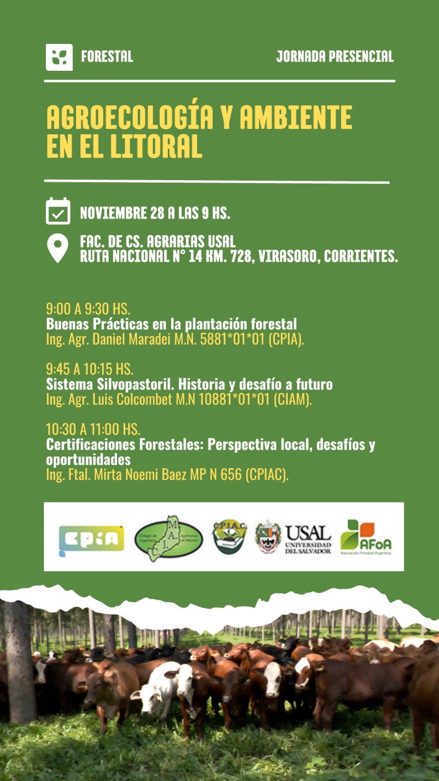 -9.45 a 10.15 hs: “Sistema Silvopastoril. Historia y Desafío a Futuro”. Ing. Agr. Luis Colcombet M.N 10881*01*01 (CIAM).