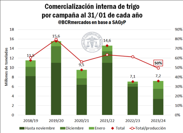 Sin embargo, el mercado interno comenzó a dinamizarse desde diciembre, puesto que en los primeros dos meses de la campaña en curso se vendieron 3,8 Mt, más de la mitad del total acumulado hasta el 31 de enero.