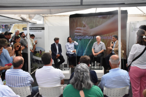 Díaz destacó los cuatro ejes vinculados a la sustentabilidad: productivo-ambiental, económico, social y tecnológico; al mismo tiempo que resaltó su organización a partir de las modalidades de intercambio: Agricultura regenerativa, Políticas Públicas, Bioeconomía, Agtech & Digitalización y Biotecnología.