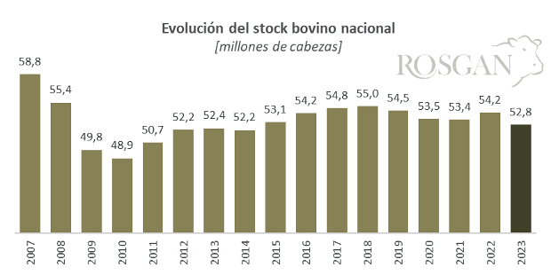 No obstante, aun asumiendo esta pérdida, podríamos decir que a pesar de la drástica sequía sufrida el año pasado, la caída en número de cabezas fue menor a la esperada inicialmente, analizó el Rosgan.