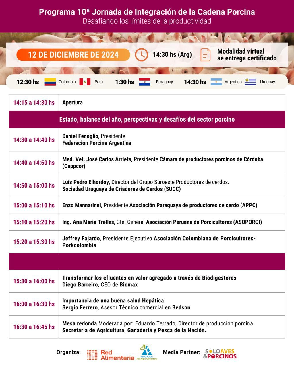 Organizado por Red Alimentaria y la Asociación Red Agroalimentaria, este encuentro tiene como objetivo reunir a productores, profesionales y expertos del sector para abordar las temáticas más actuales e innovadoras que están transformando la industria. A lo largo de la jornada, se tratarán temas fundamentales para optimizar los procesos productivos y garantizar la sustentabilidad y competitividad de la cadena porcina.