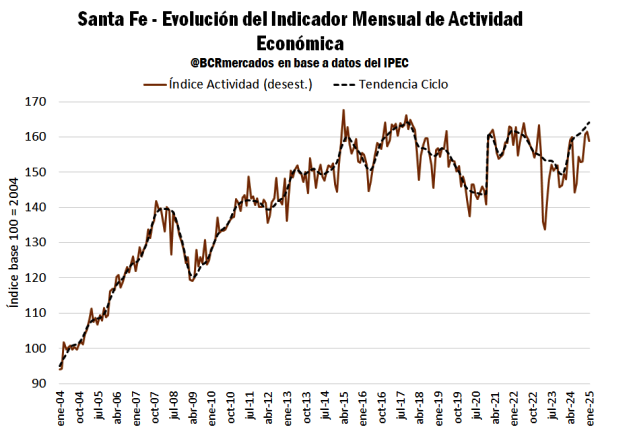 En enero de 2025 la actividad santafesina aumentó 6,4% i.a., el mayor salto para el mes desde 2010. Hay expectativas de grandes inversiones por parte del gobierno provincial. Por su parte, el agro acompaña con la mayor siembra de su historia.