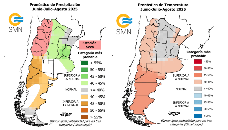 Según el pronóstico trimestral, el invierno 2025 tendrá temperaturas superiores a lo normal y se prevén lluvias por encima del promedio en zonas productivas clave.