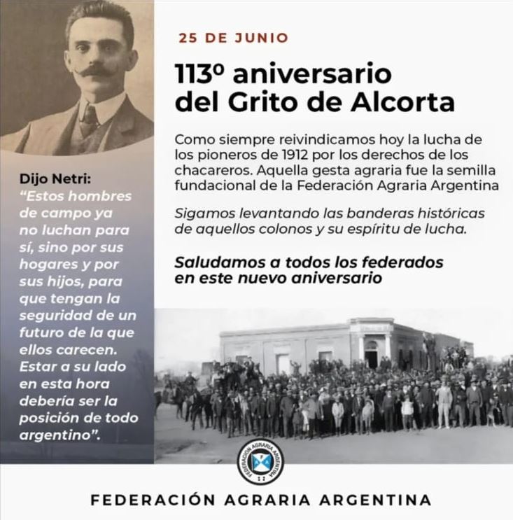 Sarnari reivindicó el valor de la palabra, el diálogo y la organización como herramientas claves para sostener la lucha de los pequeños y medianos productores. “El Grito de Alcorta nos recuerda que hubo chacareros que sabían leer, escribir y organizarse. Hoy, más que nunca, debemos aferrarnos a esas enseñanzas y rechazar los discursos de odio, la desacreditación y la intolerancia”, advirtió.