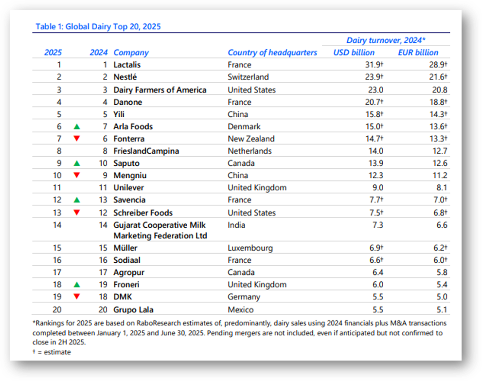 Un análisis del Rabobank advirtió que en 2025 las gigantes lácteas se estancaron y que se vislumbra un año de fusiones y movimientos. Mirá el ranking.