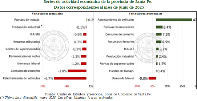 Este comportamiento es coherente con la marcada contracción que ha registrado la actividad económica provincial en las últimas cuatro mediciones, lo que ha llevado a una desaceleración progresiva en la intensidad del crecimiento interanual, dice el informe.  Los datos presentados sintetizan lo ocurrido durante el primer semestre del año en la economía de la provincia de Santa Fe.