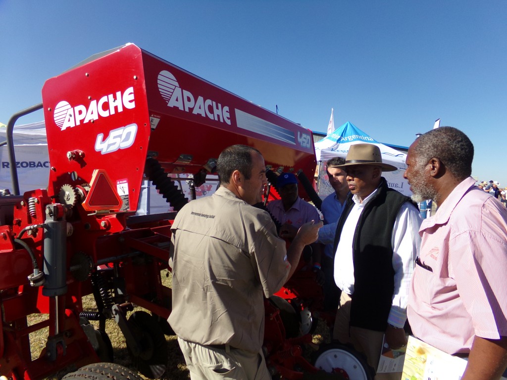 Foto principal: el rey de Lesotho, Kinhg Letsie III, interesado en una sembradora Apache en la feria Nampo del año 2015.
