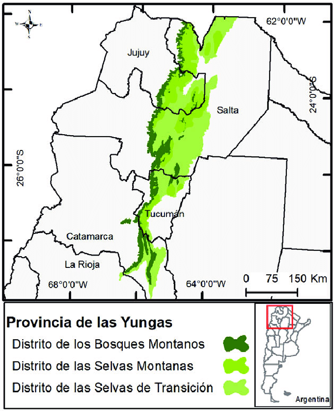 Las Yungas son una ecorregión de selvas subtropicales húmedas de montaña que se extienden como una estrecha franja verde sobre las laderas orientales (húmedas) de las sierras Subandinas y la Cordillera Oriental, en el Noroeste argentino (NOA). Se localizan principalmente en las provincias de Salta, Jujuy, Tucumán y, en menor medida, Catamarca, extendiéndose desde la frontera con Bolivia.