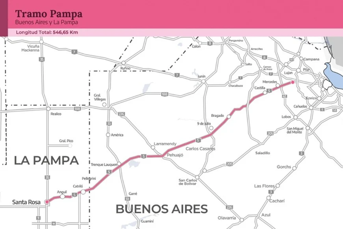 -Tramo Pampa (547 km): Sobre la RN 5, conectando Luján con Santa Rosa.