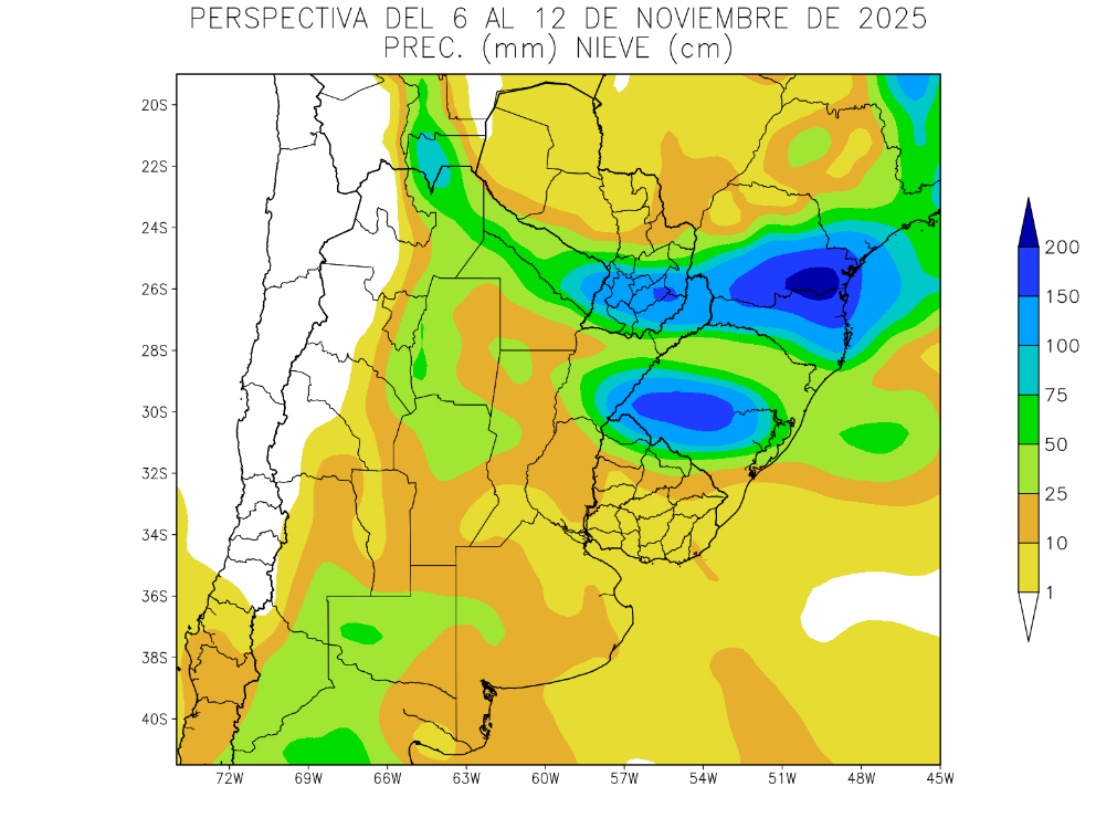 (NAP) Debido al ingreso de vientos polares en los días previos, la perspectiva agroclimática para la semana del 6 al 12 de noviembre comenzó con temperaturas bajo lo normal en la mayor parte del área agrícola, con heladas generales sobre las zonas serranas y cordilleranas del oeste, y heladas localizadas sobre las serranías bonaerenses y el este del Uruguay.