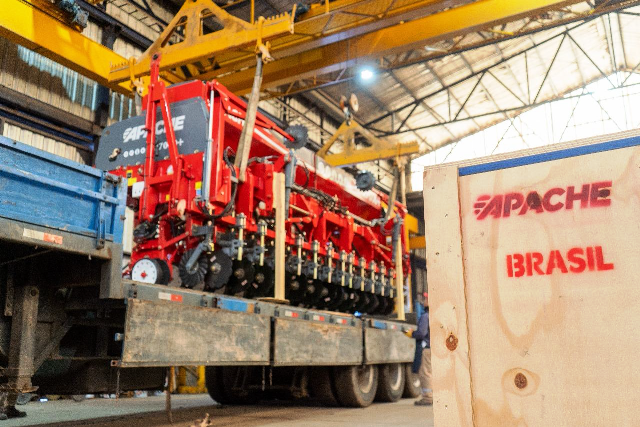 (NAP) La empresa de Las Parejas, Apache SA., referente en la fabricación de maquinaria agrícola, concretó un envío estratégico a Brasil: una sembradora del modelo 27.000 +, adaptada a las necesidades específicas del mercado local, con el objetivo de iniciar un proyecto de complementación industrial.