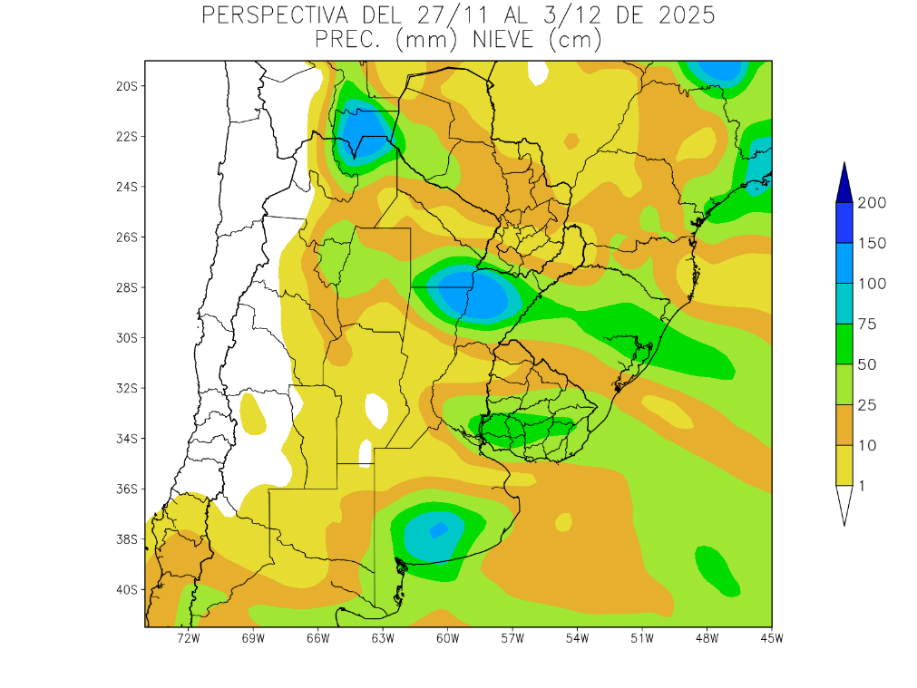 (NAP) Al inicio de la perspectiva agroclimática para la semana del 27 de noviembre al 3 de diciembre en Argentina, continuarán soplando los vientos del Trópico. A continuación, tendrá lugar el paso de un frente de tormenta, con una actividad muy diferencial, produciendo focos con precipitaciones moderadas a muy abundantes, con focos de tormentas sobre el NOA, el NEA y el sudeste/sudoeste de la Región Pampeana y zonas aledañas.