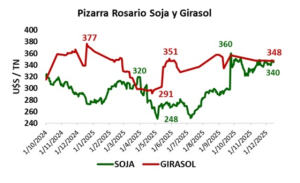 Desde septiembre 2025 sin embargo, los precios de soja superaron a los de girasol, principalmente a partir de la quita temporal de retenciones, que trajo fuerte demanda de soja, pero no de girasol.