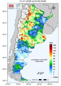 Por otra parte, el Instituto Nacional de Tecnología Agropecuaria publicó la semana pasada su pronóstico de lluvias para los próximos 14 días, con alcance hasta esa fecha y que resaltó que se esperan precipitaciones de variada intensidad en la mayor parte del territorio.