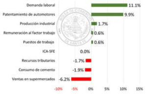 Las series con resultado positivo fueron las siguientes: demanda laboral (5,0%); recursos tributarios (0,8%) y producción industrial (0,1%).