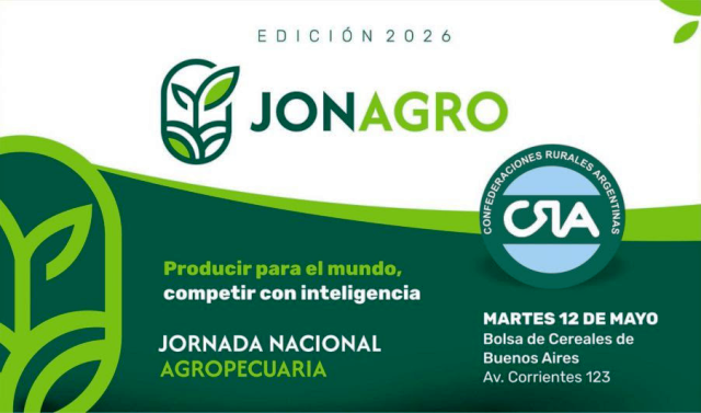 (NAP) Confederaciones Rurales Argentinas (CRA) anuncia la realización de Jonagro 2026, su congreso anual, que tendrá lugar el 12 de mayo de 2026 en la Bolsa de Cereales de Buenos Aires. El encuentro se consolida como uno de los principales espacios de debate y reflexión del sector agropecuario argentino.