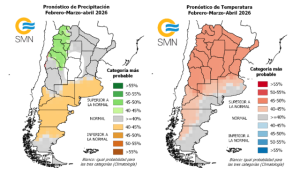 Según el nuevo pronóstico trimestral del SMN para los meses de febrero, marzo y abril se esperan lluvias cercanas a los promedios en la zona centro norte y temperaturas por encima de lo normal en todo el territorio provincial. (Noticias AgroPecuarias)