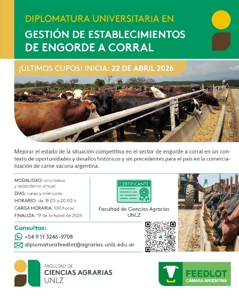 Informes e inscripción: 📞 +54 9 11 3246-9708 📩 diplomaturafeedlot@agrarias.unlz.edu.ar
