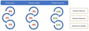 En cuanto a las ventas locales, se registraron aumentos del 5% respecto de diciembre; y de un 8% tanto en la comparación interanual como en el acumulado.