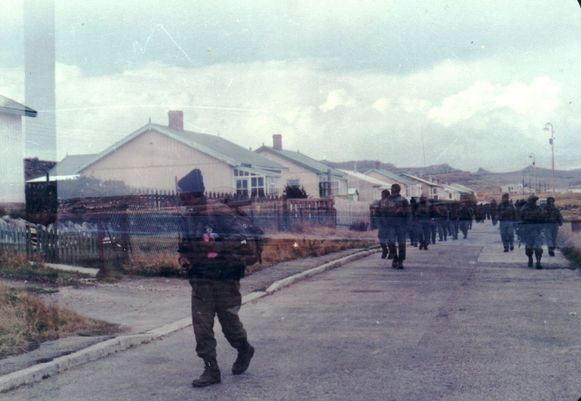 IMAGEN: Soldados argentinos recorren las calles de Puerto Argentino despues del desembarco (Imagen: Gentileza Ministerio de Defensa
