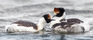 El pato macá tobiano (Podiceps gallardoi) es una especie endémica de la Patagonia argentina, protegida principalmente en ese parque, donde nidifica en las mesetas de altura. En peligro crítico de extinción, el ave es emblema del área, que protege sus hábitats reproductivos contra amenazas como el visón americano, controladas mediante monitoreo.