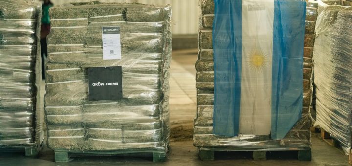 La plataforma Grow Farms concretó el 1er envío de fardos de alfalfa desde Villa Mercedes al mercado ecuestre de Ghana. El paso abre la puerta a futuras ventas en Nigeria.