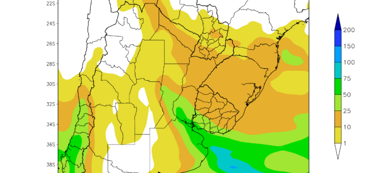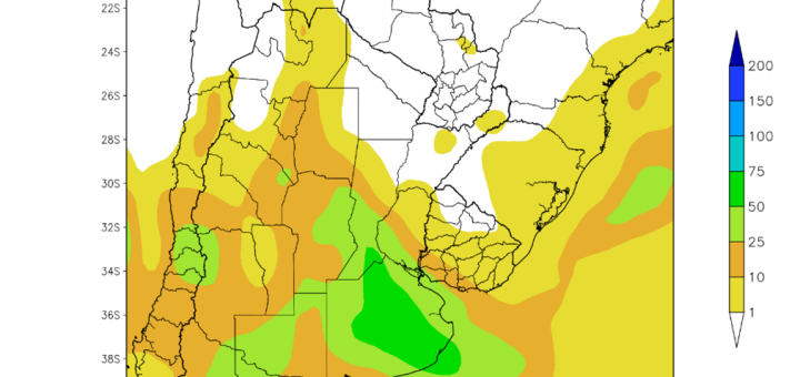 Se pronostican precipitaciones de variada intensidad solo en el sur y centro-este del área agrícola, con registros escasos en el oeste y el norte.