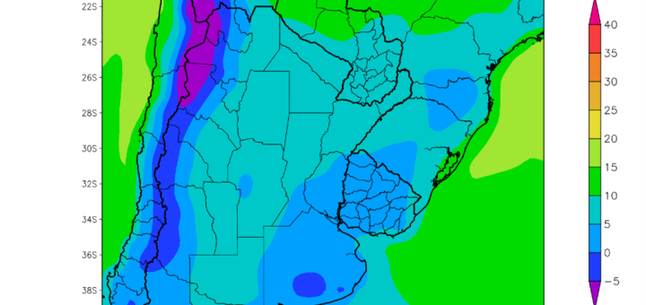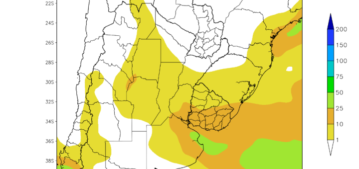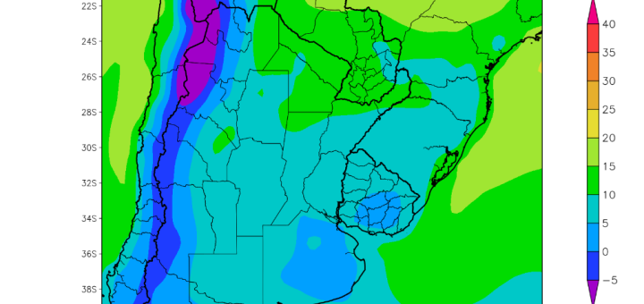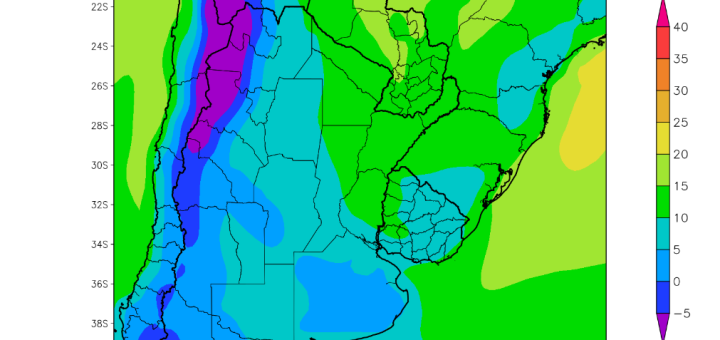 El pronóstico de la BdeC anticipó precipitaciones escasas en el mayor parte del área agrícola acompañadas con ingreso de aire polar. Heladas en zonas serranas.