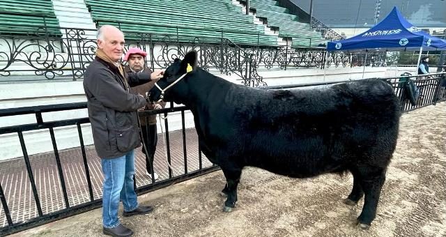 Se trata de la vaca preñada América, de la Cabaña Los Murmullos, que llegó desde General Belgrano, Buenos Aires .