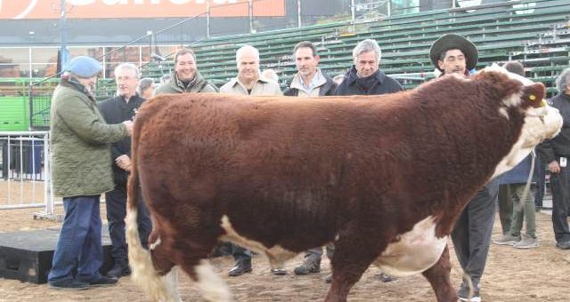 Las autoridades nacionales, junto con los dirigentes de la Sociedad Rural Argentina, formaron parte del acto de ingreso del primer animal a la pista central del predio, un toro de...