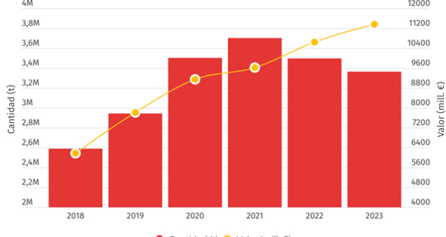 Pero bajaron los volúmenes exportados un 3,9%. Los mayores compradores de carne española fueron Francia y China.