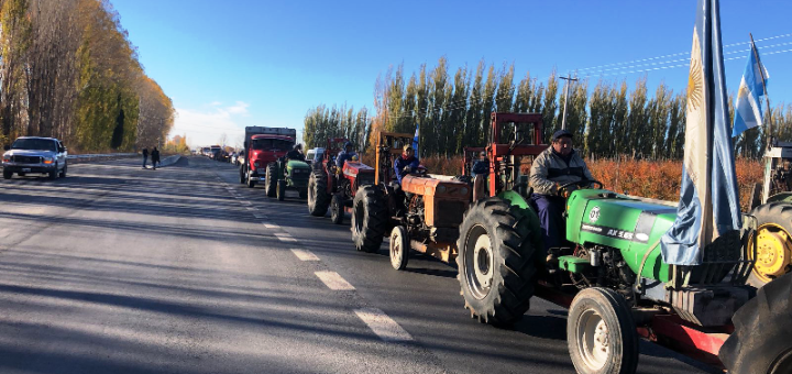 Con más de 100 tractores, los productores marcharon sobre el Puente Nuevo en dirección hacia Neuquén y regresaron por el Puente Viejo hacia Cipolletti.