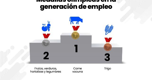 Oro para carne vacuna, plata para frutas, verduras, hortalizas y legumbres y bronce para trigo. 2 de cada 10 de puestos de trabajo vienen de la agroindustria.