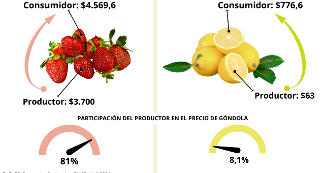 El número se ubicó en 4,29 veces en marzo. Es la participación del productor en el precio que abona el consumidor en la góndola.